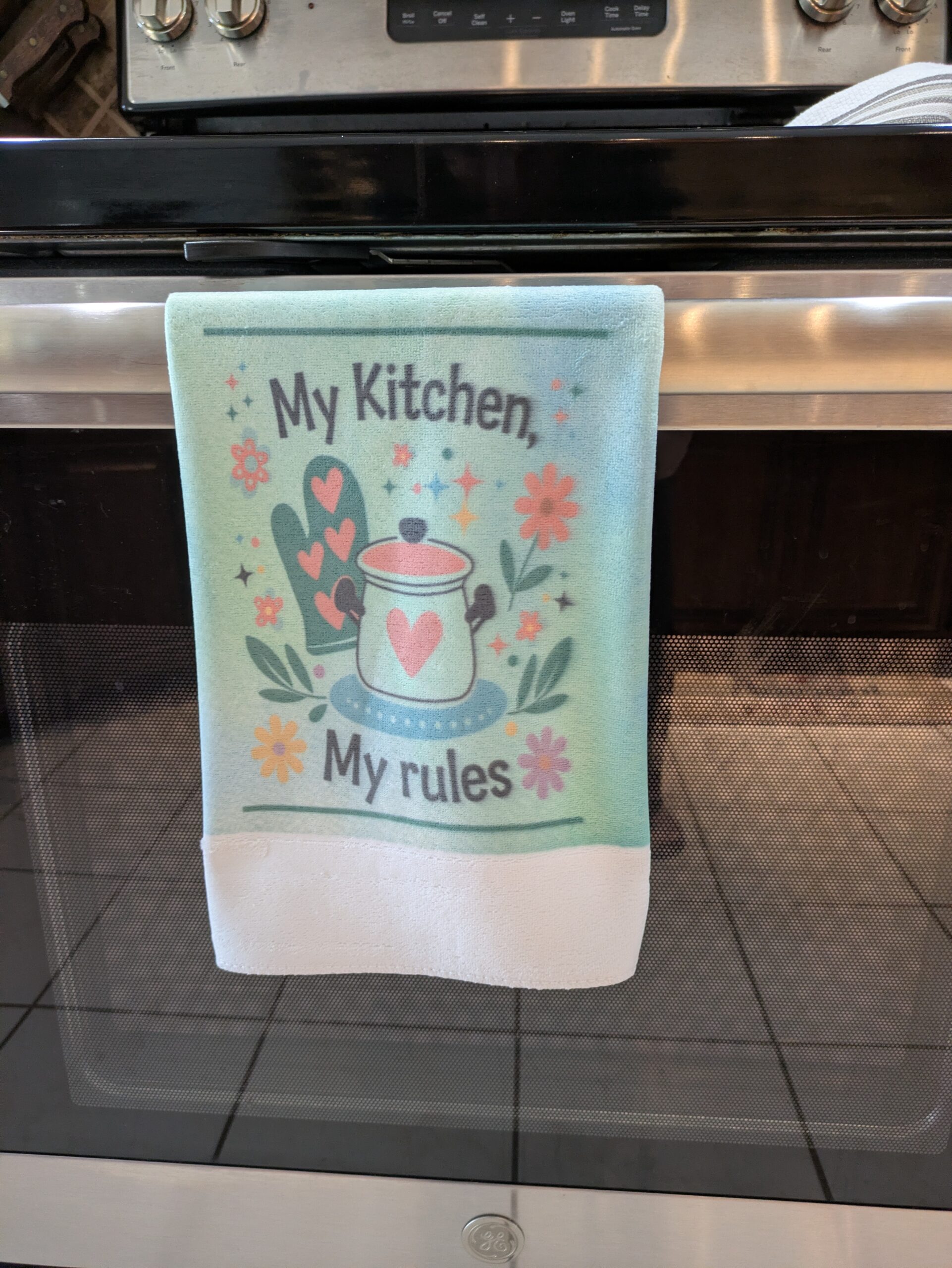Soft and absorbent kitchen towels with graphics and/or text. Contact Designing Judy to discuss personalization of your towels.  These towels can also be paired with a glass cutting board to match.  Towels are 16X24.